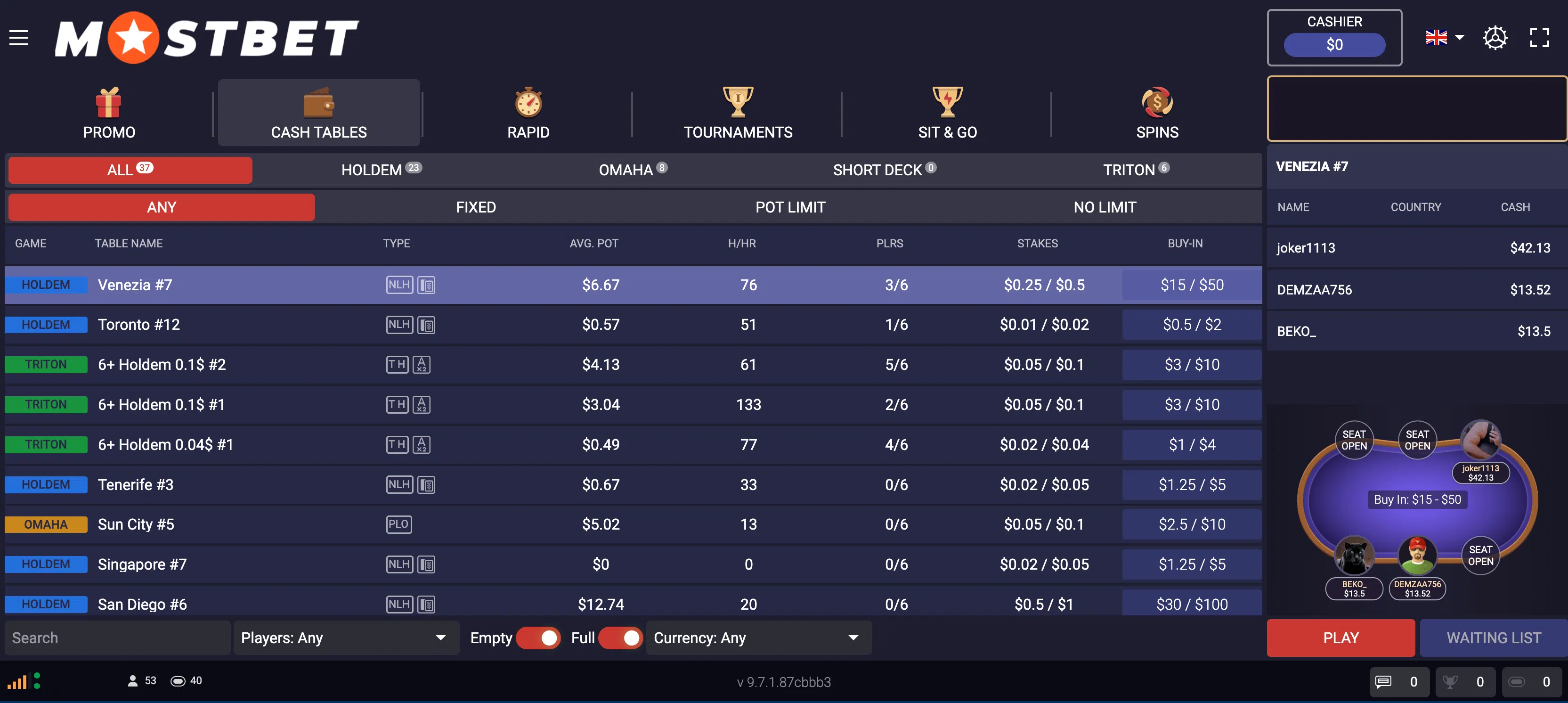 oynayabilirsiniz. Bu bahis şirketinin ofisi bu oyunun farklı türlerine erişim sağlar: Holdem, Omaha,